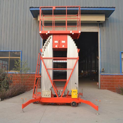 鋁合金升降機采用高強度優質鋁合金材料,具有造型美觀、體積小、重量輕、運轉靈活,推行方便。升降平穩、安全可靠等優點。它輕盈的外觀,能在極小的空間內發揮最高的舉升能力。廣泛用于工廠、賓館、餐廳、車站、影劇院、展覽館等場所,是保養機具、油漆裝修、調換燈具、電器、清潔保養等用途的最佳安全伴侶。